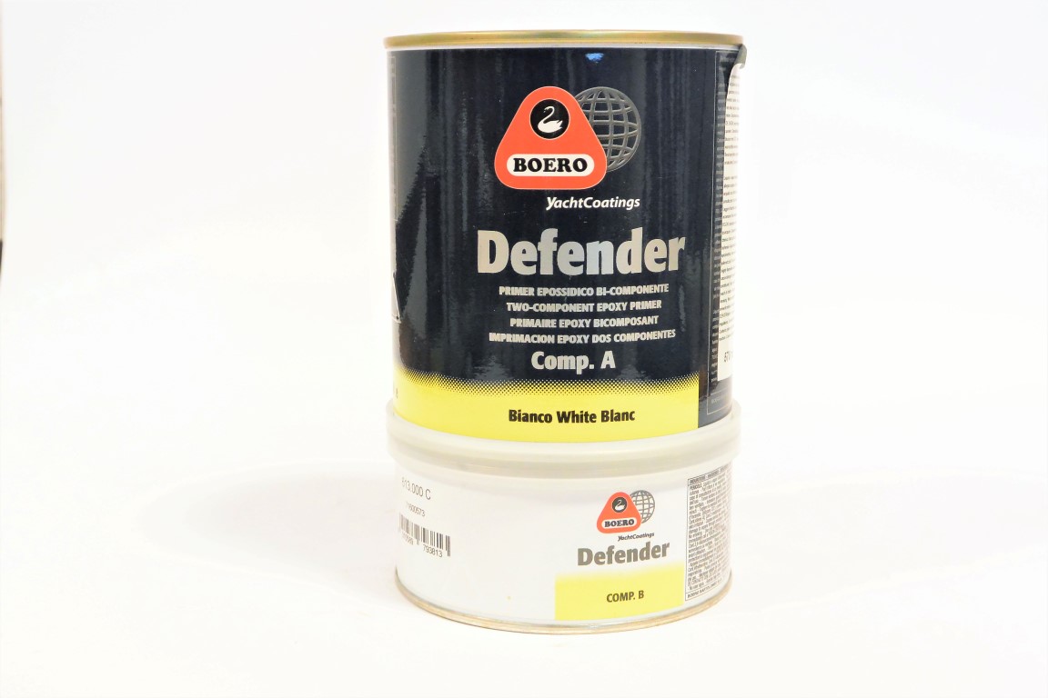 Boero Defender is een 2 componenten epoxy primer die kan worden toegepast op alle soorten ondergronden. Deze coating kan worden gebruikt als primer en als undercoat in verfsystemen. Een bijzonder kenmerk van Defender is zijn uitgebreide overschilder interval wanneer de coating met een antifouling wordt overgeschilderd. Geschikt voor onderwater rompen, maar ook aanbevolen voor boven de waterlijn. Kan na schuren worden overgeschilderd met de een-componenten topcoat Altura TC. Theoretisch verbruik 4 m²/L Aantal lagen 2-4  2e laag na min/max 3 uur Schuurbaar na 12 uur Pot life 5 h Mengverhouding 3:1 Spuitverdunning en % verdunning 693 | 15-25%Kwast/Roller verdunning en % verdunning 693 | max 5%. Voor meer informatie verwijzen wij u naar het Technisch Informatieblad en veiligheidsinformatieblad, te vinden onder het tabblad documenten.