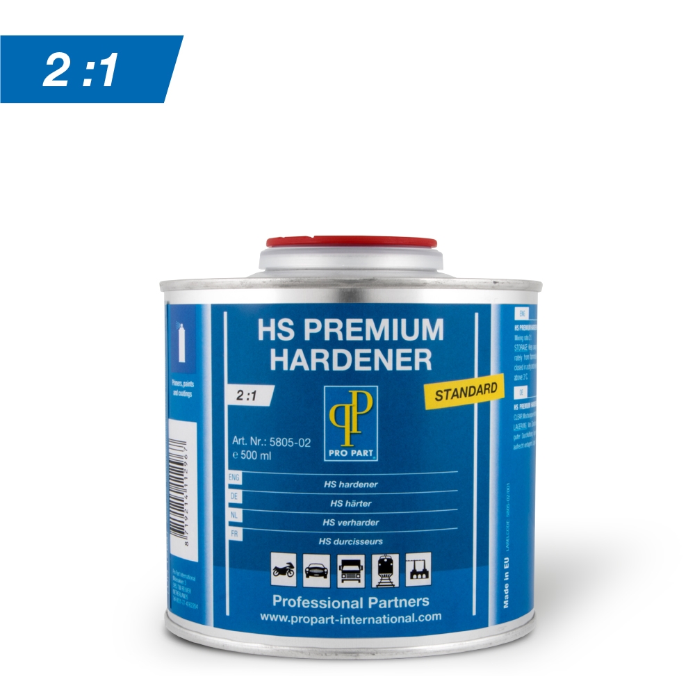 HS PREMIUM HARDENER is een 2K verharder voor het uitharden van HS PREMIUM CLEAR. Mengverhouding 2:1 met de HS Premium Clear 5802 Voor meer informatie verwijzen wij u naar het Technisch Informatieblad, te vinden onder het tabblad documenten.
