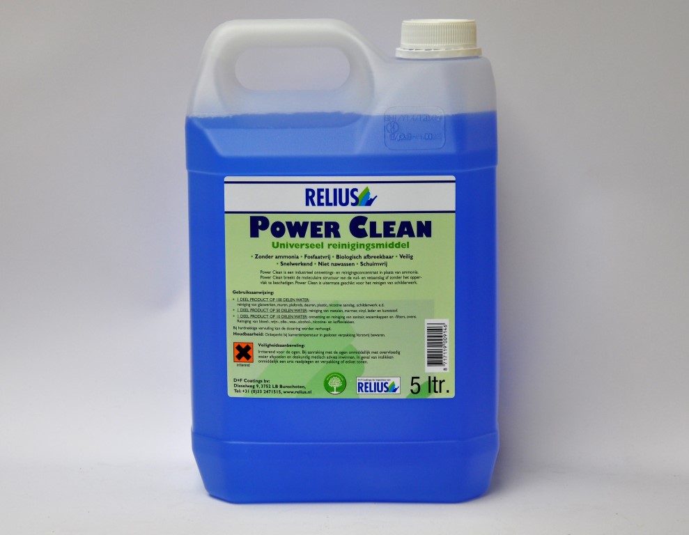 Relius Powerclean is een industrieel ontvettingsmiddel- en reinigingsconcentraat in plaats van ammonia. Niet alleen zeer geschikt voor het ontvetten van schilderwerk, maar ook uitermate geschikt als reinigingsmiddel in en om het huis. Biologisch afbreekbaar. Voor meer informatie zie technisch informatieblad.