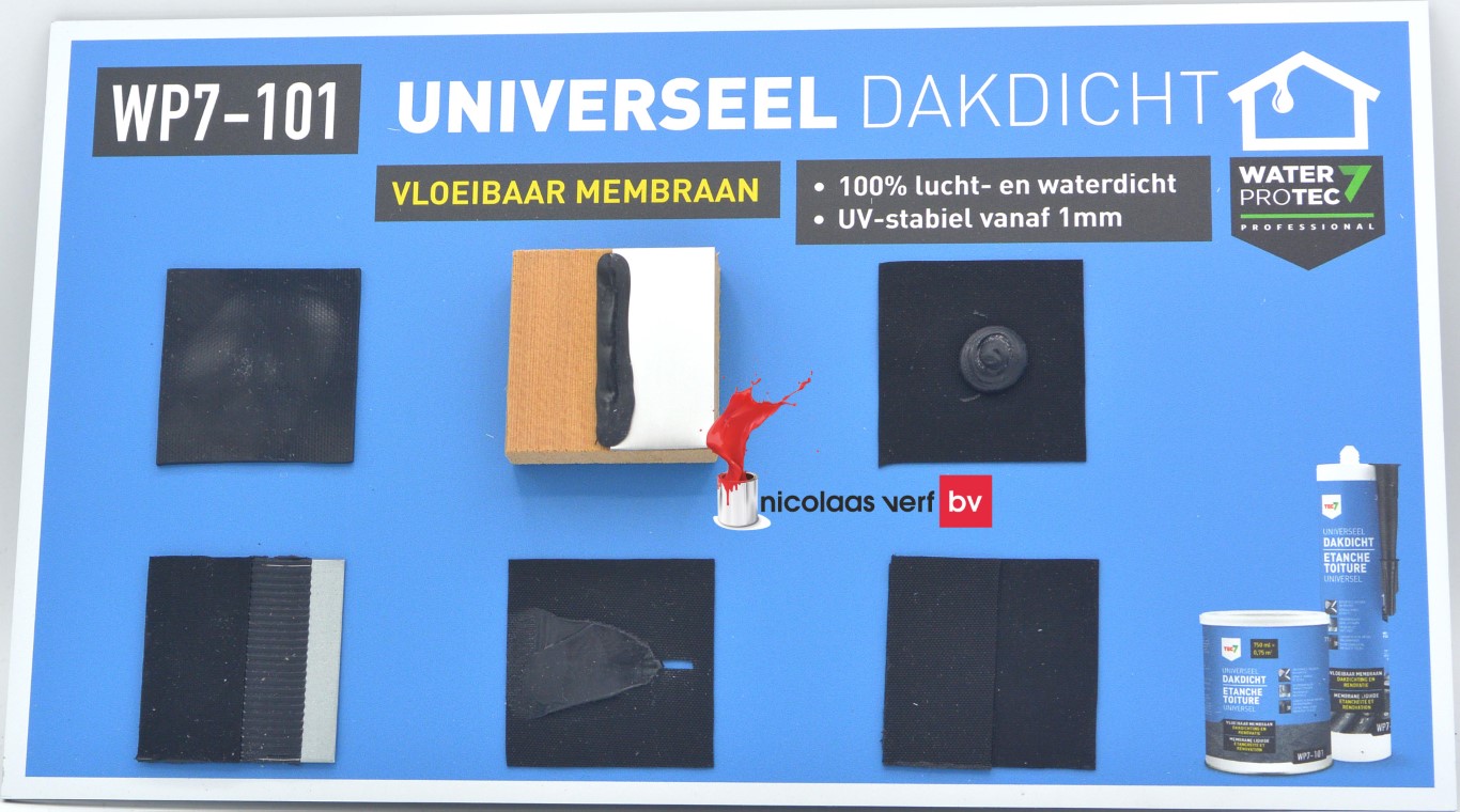 De Alleskunner van Tec7 Roofing MS Polymeren (zoals Tec7) combineren een uitstekende hechting met een hoge flexibiliteit én een goede weerstand tegen UV-straling en verwering. Dat maakt ze ideale hoogwaardige dakmaterialen. Uniek aan WP7-101 is dat het zijn eigenschappen houdt vanaf een laagdikte van één millimeter, terwijl dat standaard altijd 2 millimeter is. Compatibel met alle soorten bitumineuze materialen Tec7 biedt je alles wat je nodig hebt om water weg te houden waar het niet thuishoort, met amper 7 producten. De WP7-producten zijn allemaal veilig in gebruik en tegelijk 100% effectief. 100% professionele Belgische kwaliteit. 100% overzichtelijk en duidelijk Verkrijgbaar in Koker 310ml , 1 en 5 Literverpakking